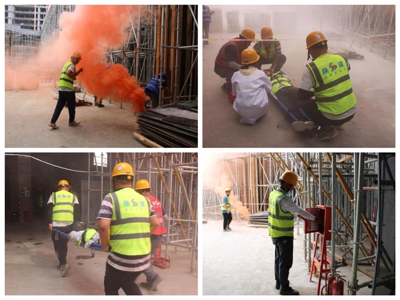 演練啟動前,項目指揮部安全部門對現(xiàn)場人員進行消防知識宣貫,使用通俗易懂的話語描述建筑物火災(zāi)的危害性,對現(xiàn)場存在的消防隱患、項目消防管理要求及火災(zāi)自救措施、消火栓、滅火器使用方法進行講解。