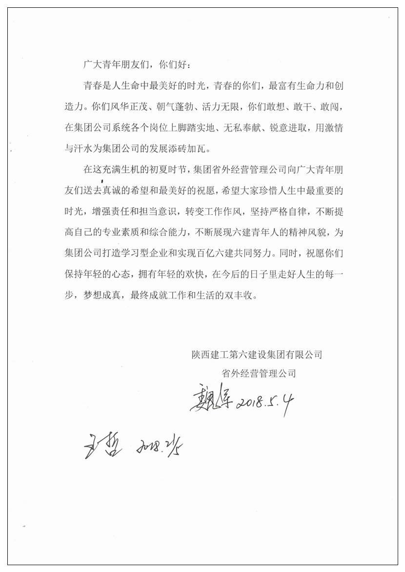本次活動的書籍是在省外經(jīng)營管理公司上下經(jīng)過不斷考察,并結(jié)合本單位青年職工的成長需要篩選出來的。這樣的送書活動一是響應(yīng)集團公司打造學(xué)習(xí)型、創(chuàng)新型企業(yè),培養(yǎng)青年職工綜合素質(zhì)的有效途徑,二是加強了對省外工作人員的關(guān)心和聯(lián)系,讓職工感受到企業(yè)團隊的凝聚力和歸屬感,讓集團公司這個大家庭永遠成為職工的堅強后盾。在送去書籍的同時,省外經(jīng)營管理公司也為青年職工送去了真誠的祝愿話語,希望他們珍惜青春時光,樹立遠大理想,堅強自律,展現(xiàn)六建人的精神風(fēng)貌,同時,祝福他們夢想成真,成就工作和生活的雙豐收。(付小康)